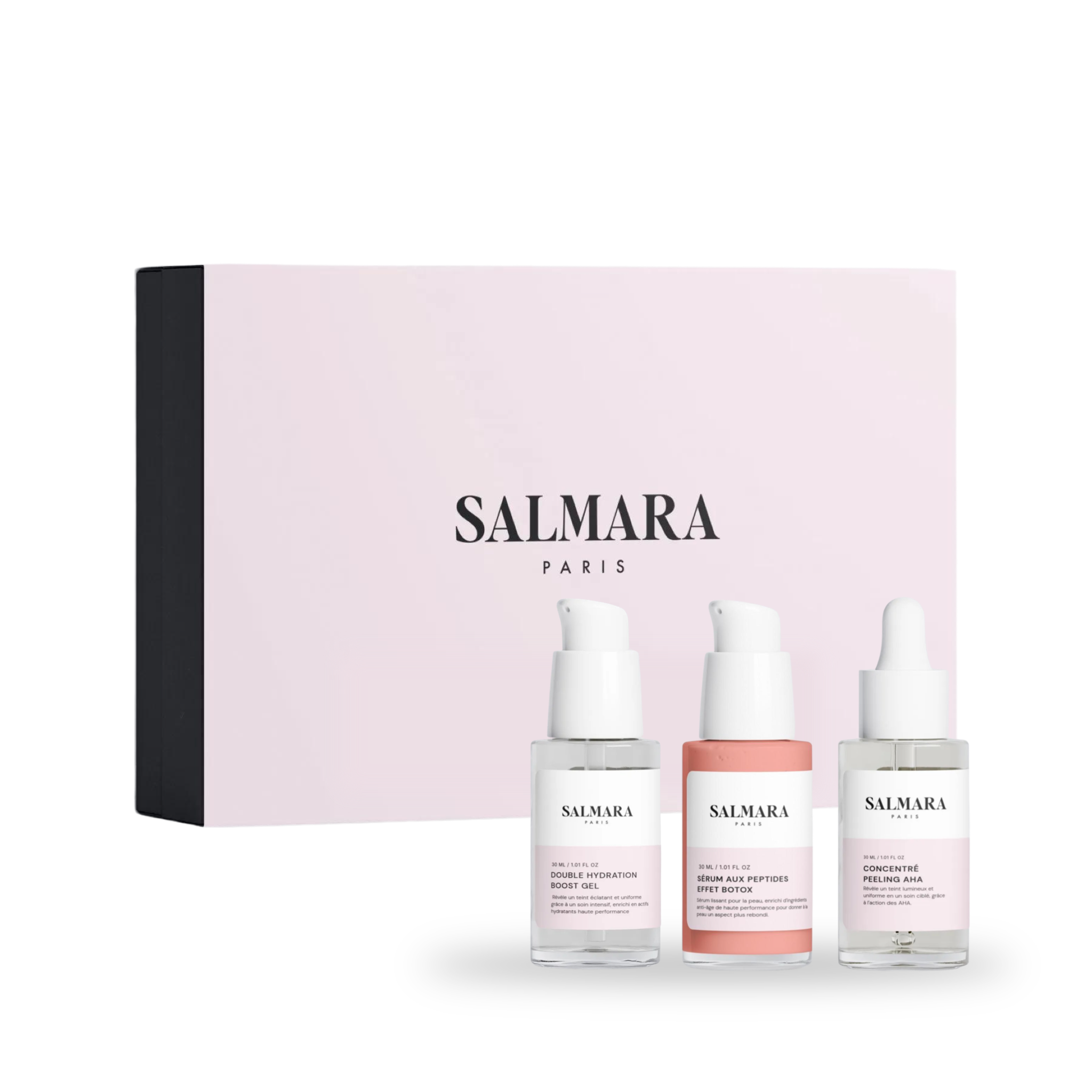 109 €Le prix initial était : 109 €.85 €Le prix actuel est : 85 €.Box Rituel éclat absolu comprend trois produits qui agissent ensemble pour donner à la peau un aspect radieux et sain : Double Hydration Boost Gel : Gel rajeunissant à base d’acide hyaluronique de poids moléculaire multiple. Peptide Serum : Sérum lissant pour la peau, enrichi d’ingrédients anti-âge de haute performance pour […]
